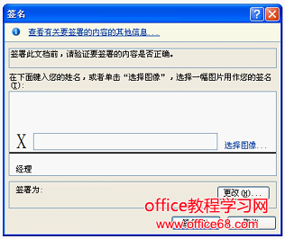 提示:要签署文档,首先需要获得数字标识。简单来说,需要具有用于证实身份的签名证书。(获取方法:获取数字标识,否则将不能进行后续的签署操作。 (3)打开“签名”对话框,如要添加打印版本的签名,可在“X”旁边的框中键入姓名。如要添加手写签名,则点击“选择图像”按钮,在打开的对话框选择所需的签名图片,然后单击“选择”按钮。
