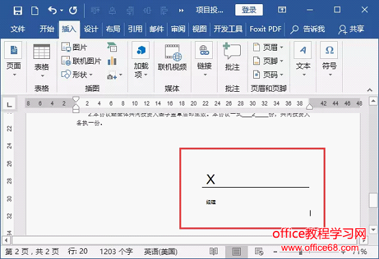 (3)此时,文档中即自动插入了签名行,效果如下图所示。