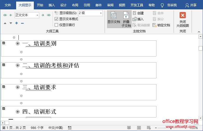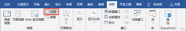 步骤二:点击【视图】-【大纲】按钮,进入大纲视图。
