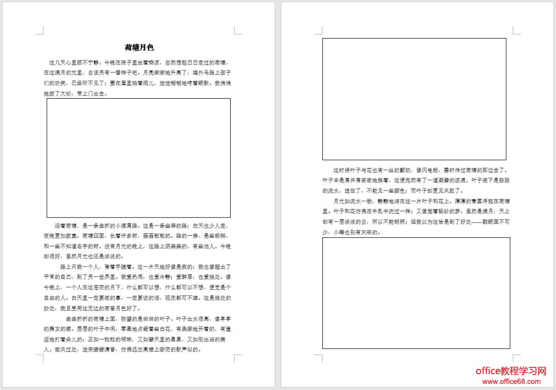 ![]() 此时,文档中的所有图片即显示为一个空白的黑色边框线,效果如下图所示。