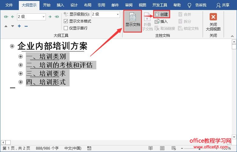 ![]() 步骤四:选择要拆分的模块,点击【显示文档】-【创建】按钮。