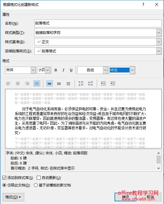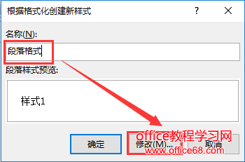 ![]() 第二步:打开“根据格式化创建新样式”对话框,输入样式的名称,然后单击“修改”按钮。
