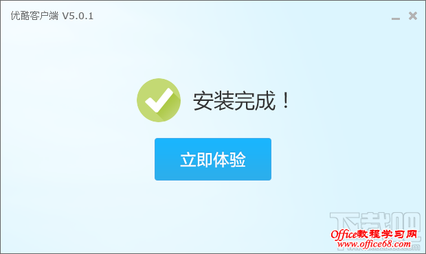 第三步:开始安装,稍等一下,安装完成后,点击“立即体验”可立即运行优酷客户端,开始找你喜欢的视频观看。