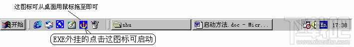 ![]() 快捷键 ( Ctrl+Alt+w )启动图 五、 在任务栏[开始]右侧的 “ 快速启动 ” 栏处点击万能五笔 图标。 如下图: ![]() 用鼠标点击启动万能五笔图 把桌面上的 图标拖到任务栏“快速启动”里如上图的方法是: 用鼠标按住快捷图标 拖到任务栏“快速启动”处,显示一条黑色竖线放开鼠标即可实现。如果不能实现请在任务栏中空白处点鼠标右键,显示工具栏, “√”上 “快速启动”后,再拖动。 温馨提示: 1、使用后者两项比较快速方便。 2、在启动计算机后,只要启动一次万能五笔即可永挂在当前窗口(除手工退出外),不象传统内置的IME输入法那样,每启动一个窗口就得启动一次输入法那么繁琐。 3、进入Windows后的任何程序上,即使是否看到桌面和任务栏,只要用【Ctrl+Alt+w】快捷键即可启动。 退出与隐藏 1. 在万能五笔输入框中点击鼠标右键会弹出功能菜单,再点退出。 2. 点击“万能五笔”的按纽,再点退出。