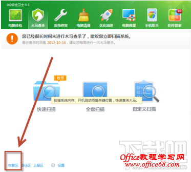 注:360杀毒的恢复区就是在360安全卫士的恢复区中。 |
