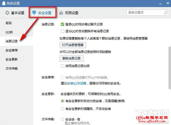 2:找到“安全设置”--“消息记录”
