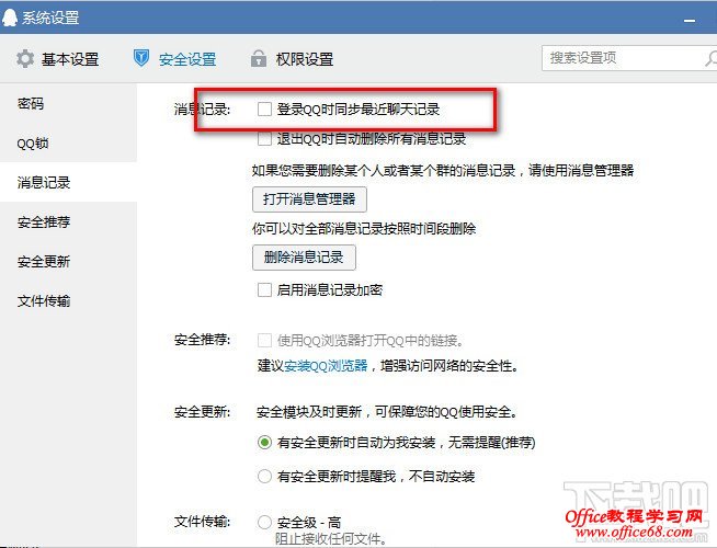 3:把“登陆QQ时同步最近聊天记录”前面的勾去掉就行了。