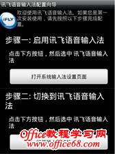 讯飞语音输入法是由科大讯飞推出的一款手机输入法,是全球首款基于“云计算”方式实现的智能语音输入法。软件集语音、手写、键盘输入于一体,不仅具有强大的语音识别效果,而且可以在同一界面实现多种输入方式平滑切换,符合用户使用习惯,大大提升了手机输入速度。具体使用方法如下: 第一,启用输入法。进入手机的“全部应用程序”,找到“讯飞语音输入法”图标,点击图标进入“讯飞语音输入法配置向导”,如下图: