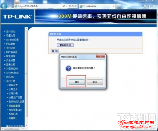7、机器进入系统工具--重启路由器,选择重启路由器