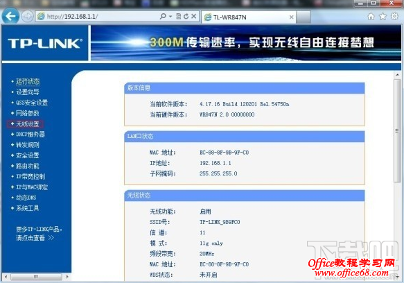 2、在左边菜单栏选择无线设置,进入无线网络设置。