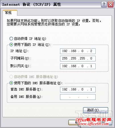 IP地址:192.168.0.XXX:(XXX为2~254) 子网掩码:255.255.255.0 网关:192.168.0.1 DNS服务器:您可以填写您当地的DNS服务器地址(可咨询您的ISP供应商)也可以由路由器作为DNS代理服务器。 2.登陆路由器。 打开IE浏览器,输入路由器的默认IP地址(192.168.0.1)并回车(如下图) 在弹出的登陆窗口里,输入用户名:admin;密码:admin;然后单击“确定”。(如下图)
