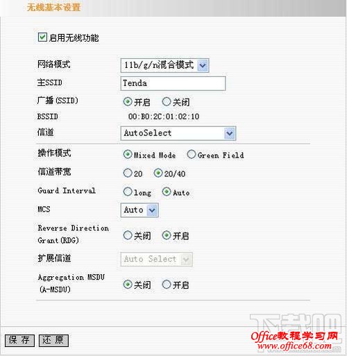 tenda无线路由器设置:设置无线连接 1.无线基本设置。 点击左侧的无线设置无线基本设置(如下图)