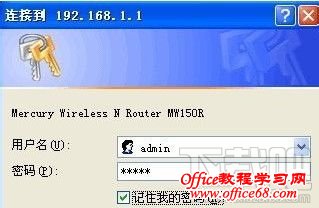 第三步:回车确认后会出现192.168.1.1登陆界面,在登录对话框中输用户名和密码(出厂设置默认均为“admin”),单击“确定”按钮。