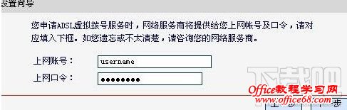 第七步:点击下一步后,出提示输入上网的账号和密码,这是申请宽带时候给的。