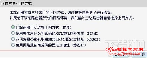 第五步:单击“下一步”,进入上网方式选择页面。