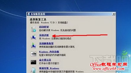 选择进入还原选项 选择还原点 4、重新安装操作系统。