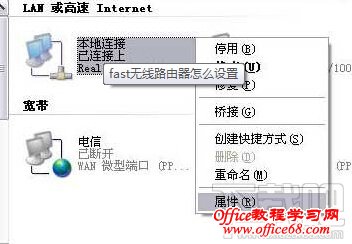 第二步:建立正确的网络设置 1、设置电脑的IP地址。右键点击“网上邻居”——“属性”。