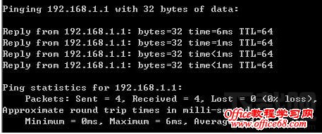 【验证】点击“开始”——“运行”——“输入CMD”点击确定。在打开的CMD窗口中输入ping 192.168.1.1 其结果显示如下。说明已近与路由器连通了。