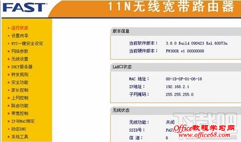 2、用户名和密码正确,浏览器将显示管理员模式的画面,并会弹出一个如下图的设置向导页面(如果没有自动弹出的话,可以单击管理员模式画面左边设置向导菜单将它激活)。