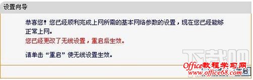 【注意1】如果没有更改无线设置,将弹出如下图所示的设置向导完成界面,单击完成结束设置向导。