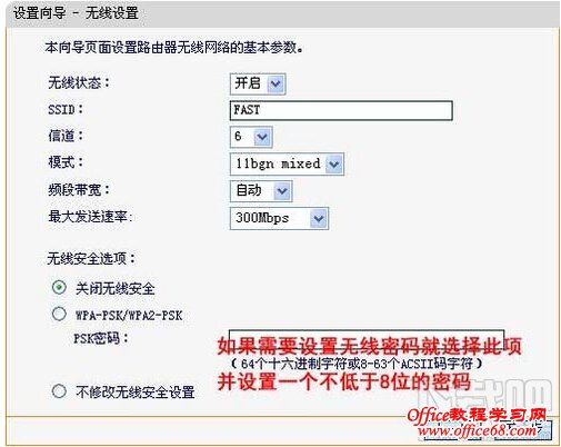 5、设置完成后,单击下一步,将看到如下图所示的基本无线网络参数设置页面。