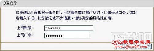 4、在如下图的界面中输入ISP提供的宽带上网的用户名和密码。