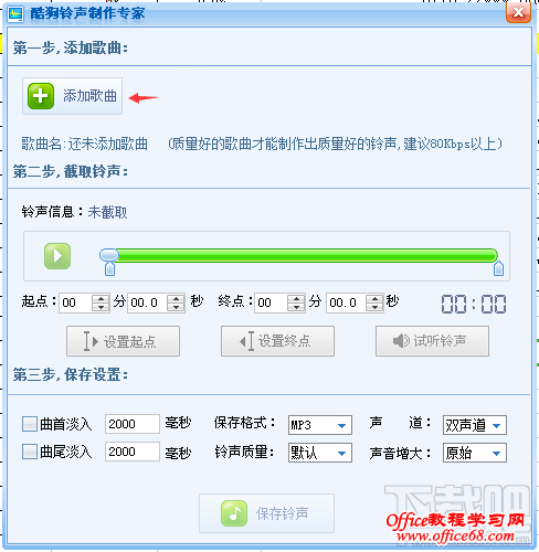 第二步,打开了酷狗铃声制作专家,点击添加歌曲。