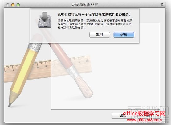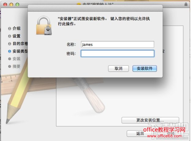 点击图标“安装搜狗输入法”,按提示操作即可安装搜狗输入法 for Mac,中途会要求输入一次Mac系统开机密码。如果您不知道密码,建议询问买电脑时帮您设置系统或者装软件的人。
