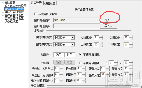 8、下面的横排分窗口设置、竖排合窗口设置、竖排分窗口设置调整的方法类似。其实这部分的设置,就是对输入法横排、竖排、合窗口、分窗口四种状态的皮肤设置,当然如果你在使用输入法时不常用竖排、和分窗口状态的话,后面这三个横排分窗口设置、竖排合窗口设置、竖排分窗口设置也可以不进行设置。