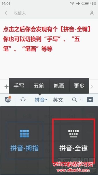 3、之后就切换到全键盘输入了,英文的也是一样的方法。