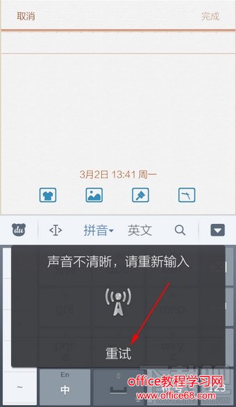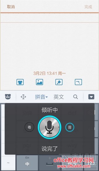 手机百度输入法语音输入功能怎么用?对于不少不熟悉手机输入法键盘输入的中老年朋友们来说,语音输入十分重要,那么手机百度输入法语音输入怎么用呢?手机百度输入法语音输入功能怎么用呢?看看下面的教程吧! 手机百度输入法语音输入功能怎么用?1.在手机百度输入法下,滑动工具条 ![]() 2.点击【语音】图标 ![]() 3.开始说话,说完点击【说完了】即可 ![]() 4.或长按【空格】键也可进行语音输入 ![]() ![]() 5.如识别不准确,选择【重试】即可 ![]()