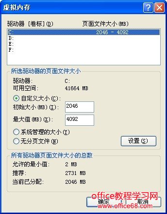 内存为2G及以上的,一般可以禁用虚拟内存(有软件限制的可以设少量虚拟内存,如16-128MB)。部分确实会使用大量内存的人,并收到系统内存不足警告的,才需要酌情设定虚拟内存。
