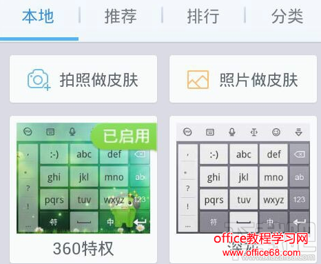 我们可以先点击【本地】,来看一下,里面有什么内容,你可以选择一个皮肤,也可以拍照做皮肤或相册里选图片做皮肤,如下图所示。