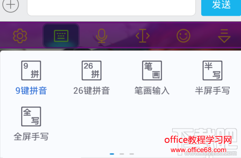 然后我们点击选择页面如图所示的键盘,就会弹出很多键盘输入选项了,我们可以选择半屏手写,也可以选择全屏手写