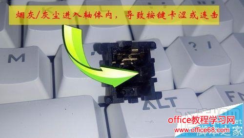 一 、购买及使用 1、个人购买机械键盘可先到相关的论坛,贴吧或者QQ群进行了解,看哪一款类型的键盘更适合自己。如:办公可使用棕、红、青轴体的机械键盘;游戏适合使用黑、棕两款; ![]() 2、机械键盘理论上,按键/轴可以达到几千万次的寿命;但平时使用时要注意减少烟灰/灰尘,以及液体的侵入。而且,机械键盘使用一段时间后,要清理后再进行放置;否则,机械轴体内的弹片会因为使用、空气接触、受潮等多重因素导致氧化而出现连击或失灵等问题。 ![]() 3、因此,机械键盘其实比薄膜键盘更脆弱,使用中及使用后要注意防护;养成良好的习惯。 1)使用时洗手、尽量不要吸烟/烟灰不要掉落在键盘上; 2)使用后简单清理,可用电吹风冷风档吹一吹,并用键盘罩或布盖上。 ![]() 二、机械键盘常见问题 在市场上销售的机械键盘中,不管是樱桃轴,还是凯华或者自营品牌轴,都不是万能的,除了机械轴本身的理论寿命外,客观的条件也是加速轴体不良的主要因素。 连击: 1、连击主要发生在吸烟、粉尘、潮湿等环境。 例:处于天热、潮湿环境(尤其是南方沿海地区),使用时轴体弹片极易氧化,甚至发生卡键的现象(以青轴居多,因青轴是两段式结构,会导致卡键)。 有的人可能会遇到,使用几次而已,键盘却出现连击或者打不出字的现象。这就是因为使用后没有保养好,或者湿气导致弹片氧化。 ![]() 2、那么,灰尘为什么会进入轴体?机械轴并非密闭式结构,按键按压时轴心的上下起落会导致轴体产生空隙,产生的微小气流足够导致浮灰进入轴体,从而导致轴体损坏。从而出现打1个,出几个或者打3个,出2个的现象。 ![]() ![]() 3、另外,个人使用习惯也会导致按键的连击或者卡涩。 例:吸烟后看到键盘里有烟灰,就把键盘翻过来敲打,之后再正过来继续使用。这样是错误的,会加重键盘按键不良的速度。 ![]() ![]() 4、连击处理方式: 1)首先,将键帽拔下,之后用电吹风清理浮灰;之后,用废牙刷刷掉键盘缝隙中的灰尘(牙刷上可缠布条,稍稍打湿后擦拭),注意不要用酒精及其他液体;最后,将键帽用洗洁精等清洗,晾干后装回。 2)如果某个按键有问题,可拔掉键帽,按动轴心的同时,用吸管对准轴心下方用力吹一吹(弹片位置),如果处理后未解决,只能换轴处理。 此外,使用外壳/键帽为银白色的童鞋要注意了,白色平时有灰尘不易察觉,更要及时清理。 ![]() 5、液体:进液后,键盘要立即断电,拔下USB插头,不然键盘会有短路的风险。此外,进液后多发生”串键“的现象。即:打Q出QWERYUIOP等字符。这时,可针对进液区域,拔下键帽后针对乱码的字符进行干燥处理。 ![]() 6、如果进液后,键盘未处理导致糖分残留,虽短期可正常使用,但时间较长后,键盘PCB及元件会加速氧化导致键盘无作用或者按键失灵等。此时再进行维修,等同于”亡羊补牢“;即使返修处理,也只能使用较短的时间(PCB渗液后会导致内部线路不良)。 ![]() ![]() 7、进液后的处理方式: 1)如果进入的是普通的纯净水一类,断电后使用纸巾等吸干水分;并用电吹风的冷风进行干燥处理;另外,可使用食品干燥剂进行辅助,有奇效。 2)如果进入的是糖分、可乐等非油性液体,建议拆开键盘,取出内板;用温水(45度左右)对进液的区域进行冲洗,之后使用(1)点方法处理,一般干燥2~3天即可使用。 3)如果进入的是面汤等油性液体,可以拆开内板后用洗洁精+牙刷对进液区域进行清洗,之后再进行干燥处理,同(1)。 注意事项: 使用机械键盘时最重要的两点就是,远离烟灰、液体;使用后注意保养,定期清理。 |