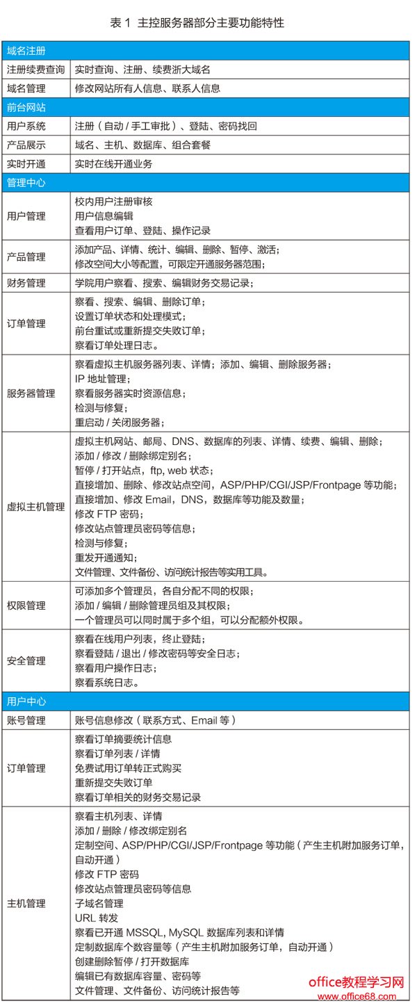 以虚拟主机公共服务云平台落实集中统一管理 随着浙江大学信息化进程的不断加速,学校各部门、各学院对信息化公共服务支撑平台提出了更高的要求,为此,浙大信息技术中心建设了虚拟主机空间公共服务支撑平台,为学校各部门、各学院提供高质量的虚拟主机服务。 虚拟主机是指学校的院系和部处租用信息技术中心服务器的硬盘空间,将本单位的信息内容存放其中。虚拟主机的优点在于:用户可免去主机服务器,节省投资,适合于访问流量较小的小型信息发布网站使用。 经调研,目前浙江大学各院系单位的网站类型主要需求如下: 脚本语言:ASP/ASP.net1.1/ASP.net2.0、PHP4/5、JSP1.1/JSP2.0、CGI; 数据库类:ACCESS、MYSQL4/5、SQLServer2000。 空间容量:200MB的网站空间、100MB的数据库空间。 域名服务:用户可申请“www.学院域名.zju.edu.cn”的网站域名,支持校内和校外访问。 平台建设 系统架构 浙江大学虚拟主机公服平台由主控服务器和功能服务器构成。主控服务器是整个系统的控制中心,存储着系统中所有用户、产品、订单、财务、域名和站点的配置信息,系统管理员、用户和站点管理员都从这里登录Web界面进行管理。虚拟主机功能服务器提供实际的Web、FTP、数据库、E-mail和DNS等虚拟主机服务,响应来自主控服务器的控制命令,对上述系统服务进行配置管理。 虚拟主机平台总体架构如图1所示。虚拟主机公服平台支持Linux、Unix、Windows等多种操作系统,虚拟主机功能服务器可以安装在Linux/Unix和windows操作系统上,既可以提供从Web、数据库、E-mail到DNS的“全频谱”服务,也可以配置为选择性地提供其中的一种或几种服务。根据学校的网站数量或预算成本,可以设置一台或几台Linux/Unix服务器为独立的E-mail服务器,其他的服务器只提供Web服务器;也可以将MySQL或MS SQL Server服务独立出来,成为专用的数据库服务器。平台可以管理由一台或多台Linux/Unix及Windows服务器构成的虚拟主机服务网络。如果只有一台服务器,可以同时做为主控和功能一体机;如果有多台服务器,其中一台将作为主控服务器,其它作为功能服务器。