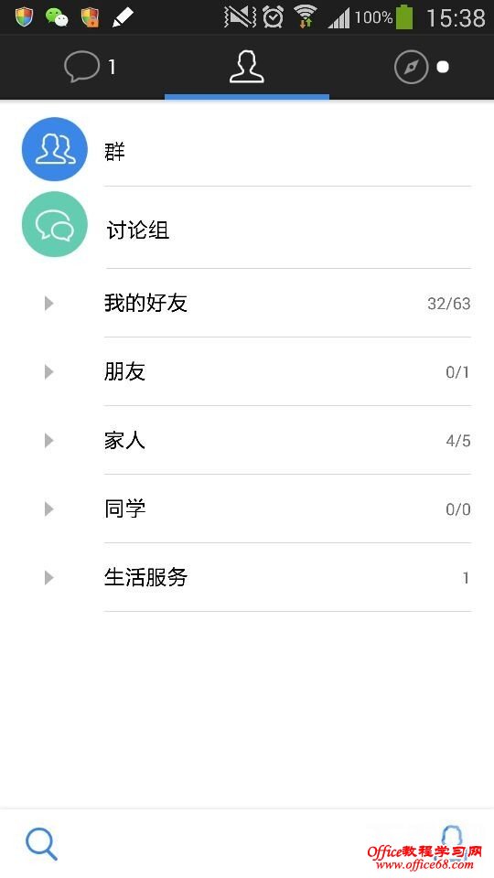 2 进入到手机界面上方有信息,联系人,动态。点击联系人,在页面的右下角有一个添加符号。