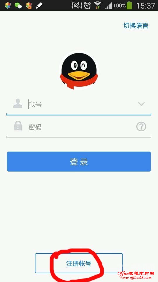 手机qq2014申请账号步骤: 1:开到手机上的qq软件,登陆到首页,不要登陆,在下角就有一个注册账号。