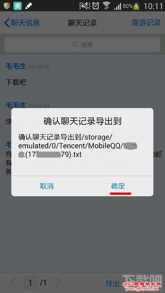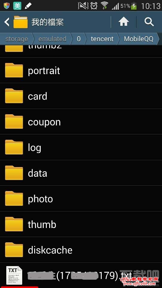 4:检查导出是否成功。我们可以看到最低端有了导出的手机qq2014聊天记录的txt文本。如果你想放在电脑上,就打开USB,连接电脑,找到文件的位置就行了。复制粘贴过去。