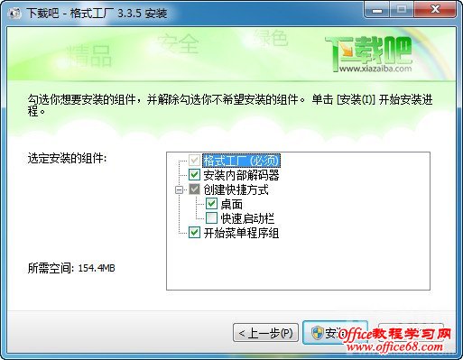 3:看看你自己的需要选定安装的组件。只要在前面点击框框,就会显现打勾或者取消的。选择好就开始安装,安装过程,尽量不要去开别的程序,怕引起软件安装不成功显现,安装时间也很快。一会就安装成功了。