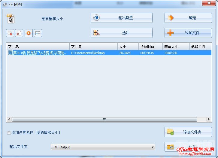 2:就会看到一个“添加文件”、“输出配置”可以按钮,我们先要添加文件,才能有文件的输出。进入后,找到你想要转换格式的文件。点击确定