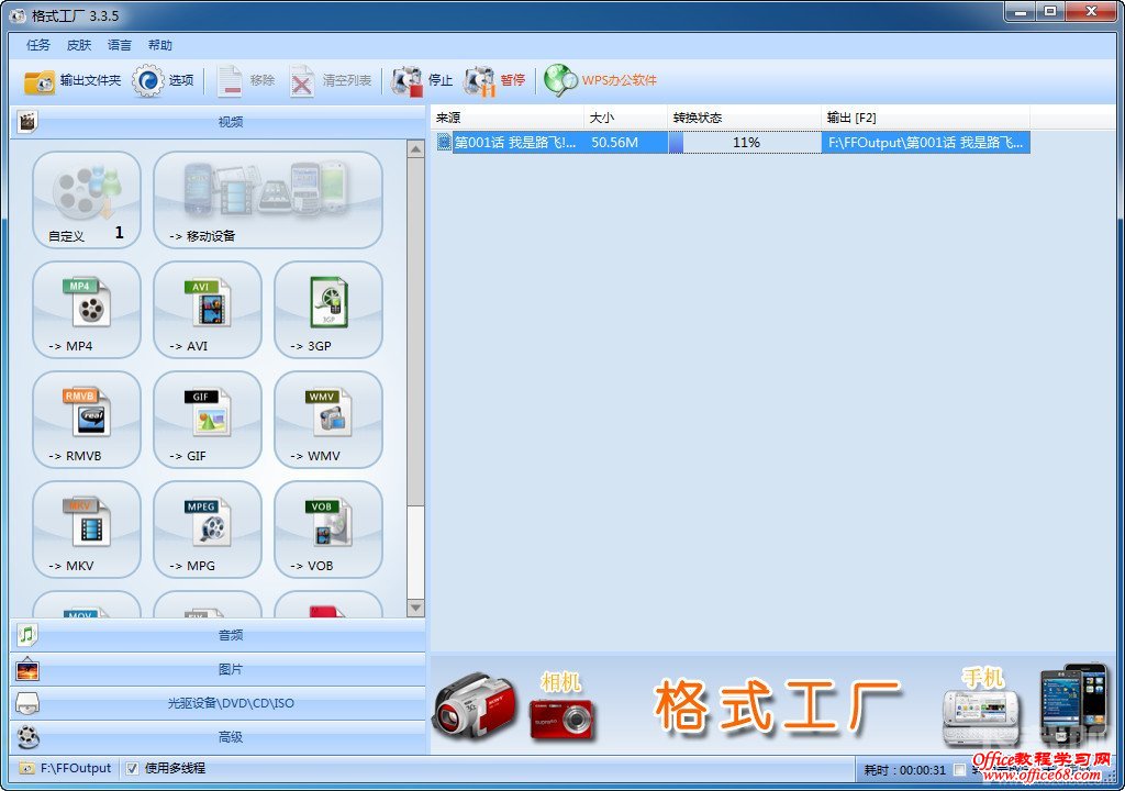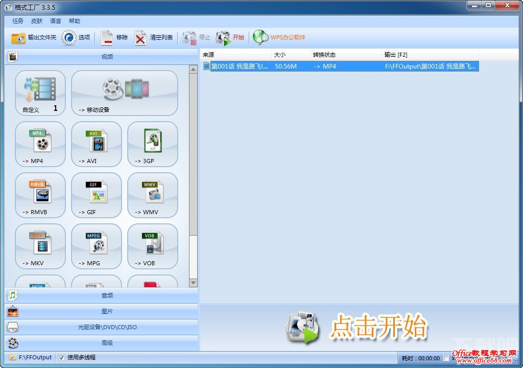 4:来到主窗口,这么你可能以为开始了,不是的,这只是选择文件而已。要选择文件来源后,点击上方的开始,才会显示出转换的百分比。