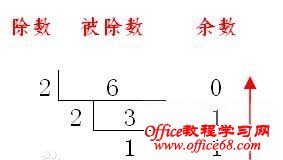 要转换的数是6, 6 ÷ 2,得到商是3,余数是0。