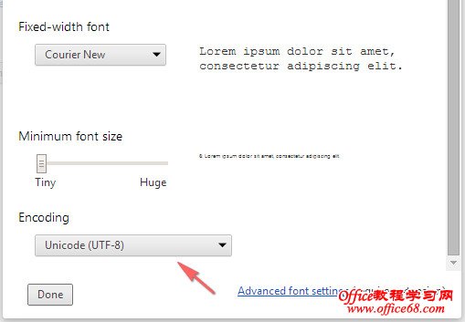 二、设置新Encoding编码点击Customize fonts,在下面的Encoding中选择Unicode (UTF-8),或者Chinese Simplified (GBK)也可以。