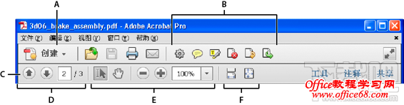 A. “创建”按钮B. “快速工具”工具栏C. “常用工具”工具栏D. “页面导览”命令E. “选择和缩放”命令F. “页面显示”命令