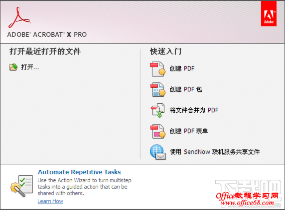 ![]() 欢迎屏幕是不打开任何文档时在文档窗格中显示的一个窗口。只需单击,即可快速访问最近打开的文件、打开文件以及启动启动一些常用的工作流程。