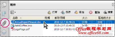 重要说明: 如果附加 EXE、VBS 或 ZIP 文件格式,则 Acrobat 会提醒您它不会打开附加的文件,因为该格式与有害的程序、宏和病毒关联,可能会损坏您的计算机。