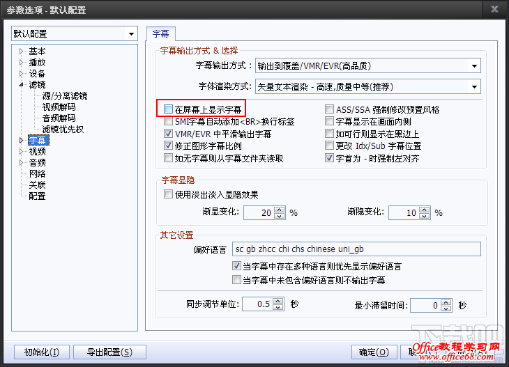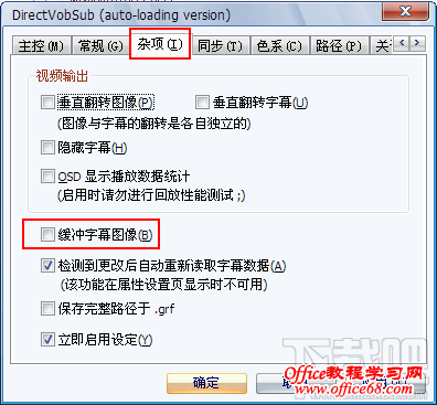 选择“杂项”标签页,将“缓冲字幕图像”复选框的勾去掉,否则无法显示卡拉OK特效
