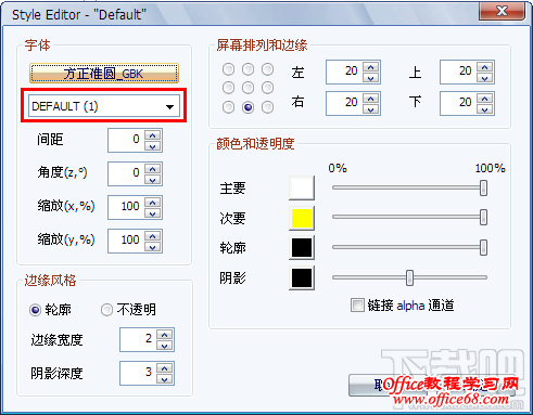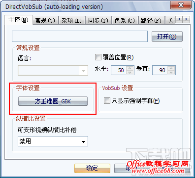 在“主控”标签页中,可以点击“字体设置”栏的按钮,弹出字体属性设置对话框,修改默认的字体属性 (请注意不要选前面有“@”标志的字体,否则字体将倒转90度) (ASS/SSA字幕默认按照自身字幕文件中的字体属性进行显示,SRT字幕则按照您所设定的字体属性进行显示)