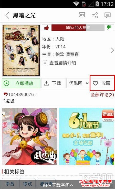 2、进入电影的信息界面后,点击“收藏”按键。这样自己喜欢的电影就收藏成功了!